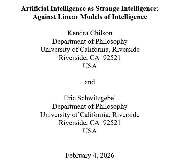 Artificial Intelligence as Strange Intelligence: Against Linear Models of Intelligence (New Paper in Draft)